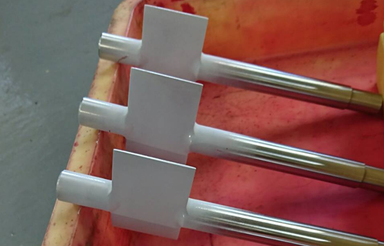 検査物対象物に浸透液を塗布してから現像剤を塗布します。 表面の模様によりきず等が検出されます。