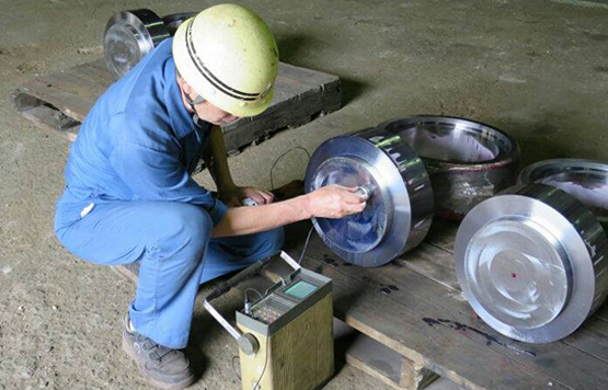 超音波を検査対象物に入射して、反射されたエコーから検査物内部のきずを検出します。 放射線透過試験が出来ない厚板の構造物、圧力容器、造船、橋梁などの構造物に活用されています。